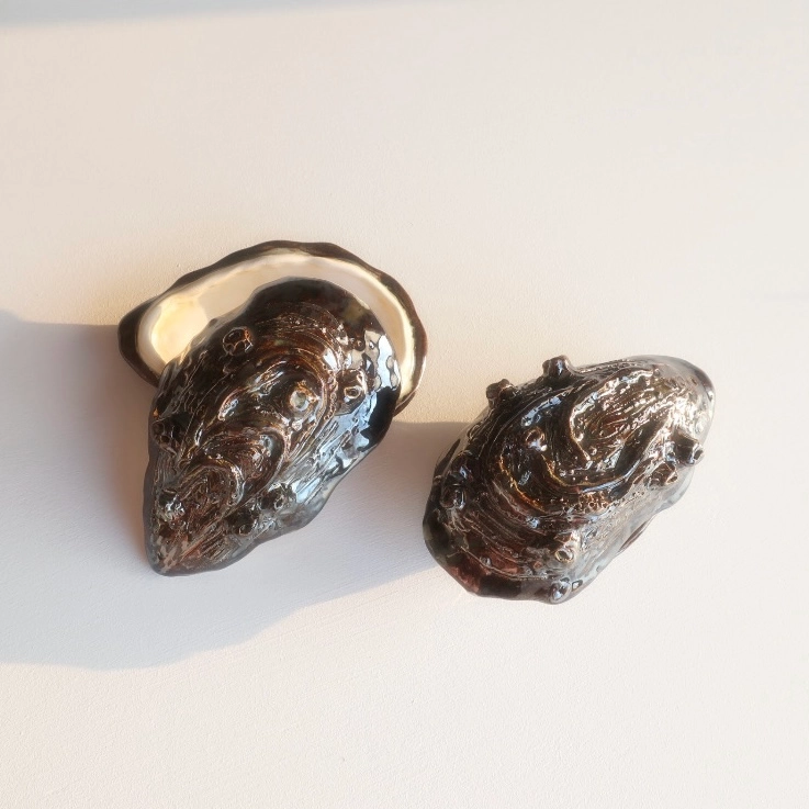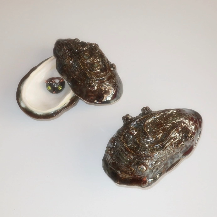매끄럽고 윤기 있는 내부와 대비되는 거친 외형이 조화를 이루는 오브제입니다.